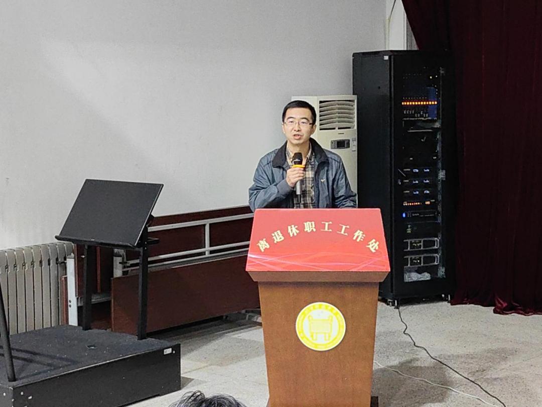 2025年10月9日下午2:00,离退休职工党委在铭德楼二层多功能厅召开理论学习中心组(扩大)会议,特邀学校发展规划处处长胡晓军教授作题为《面向二〇三五世界一流大学“钢铁脊梁”奋进计划与“十五五”事业发展规划》的专题报告。报告由离退休职工党委书记、处长白亮主持,离退休职工党委理论学习中心组成员、党委委员及各党支部代表70余人参加学习。